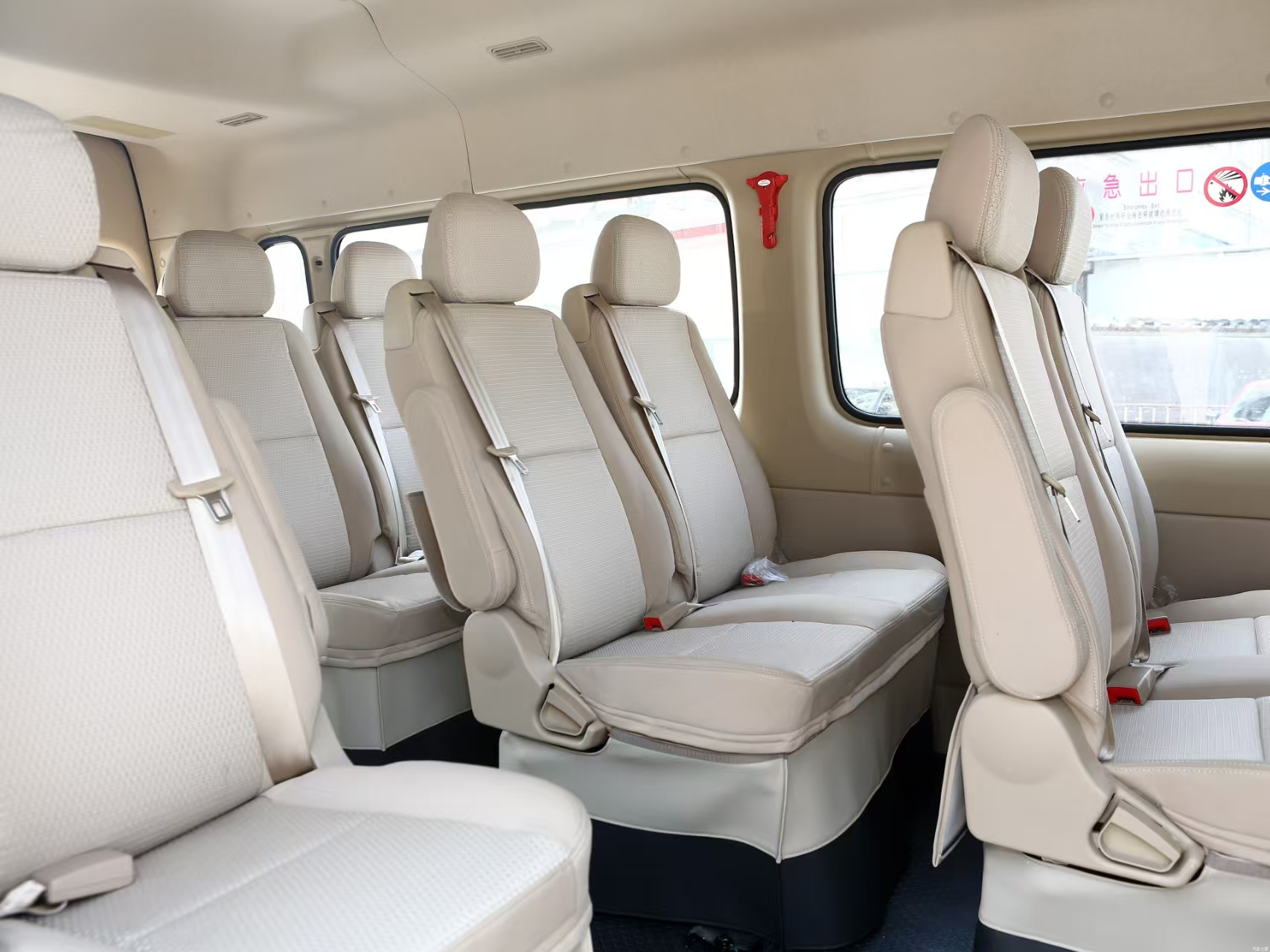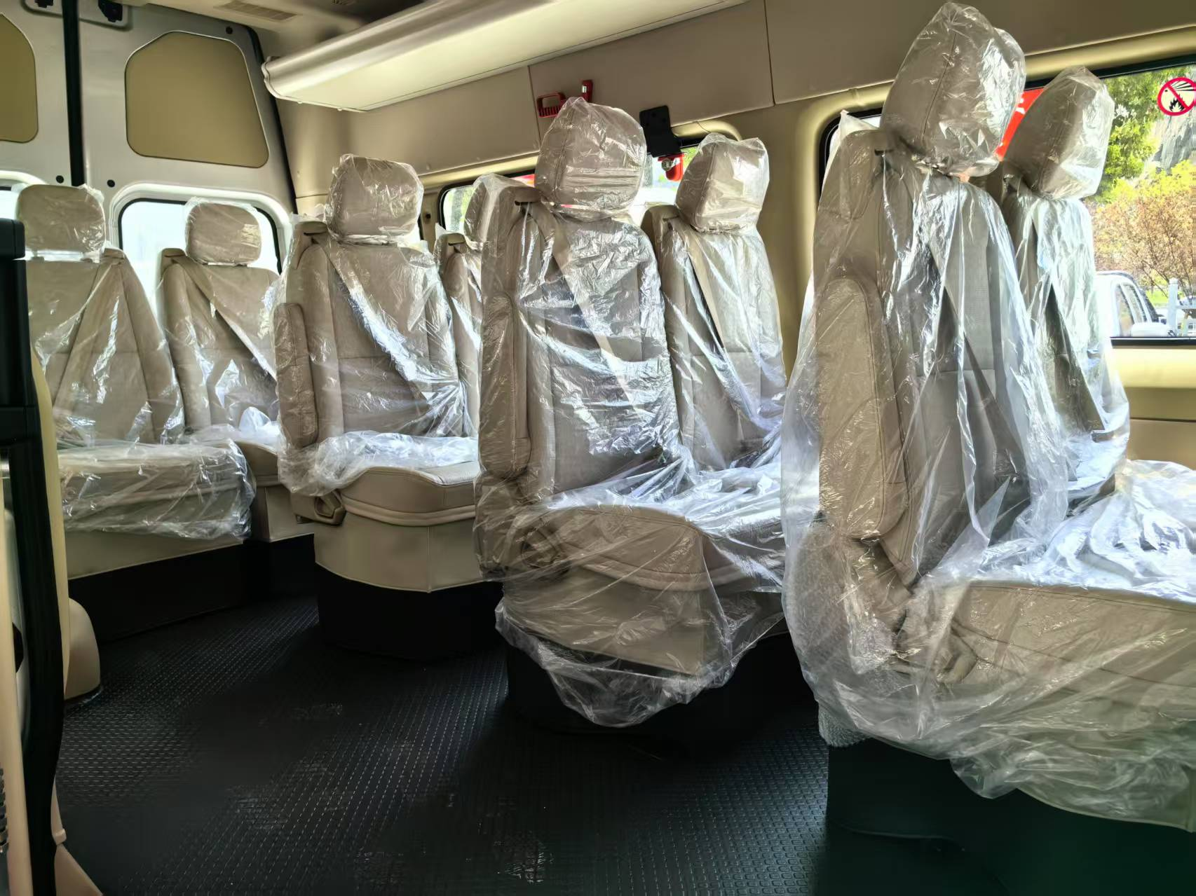 المقاعد : مقاعد جلدية باللون البيج
