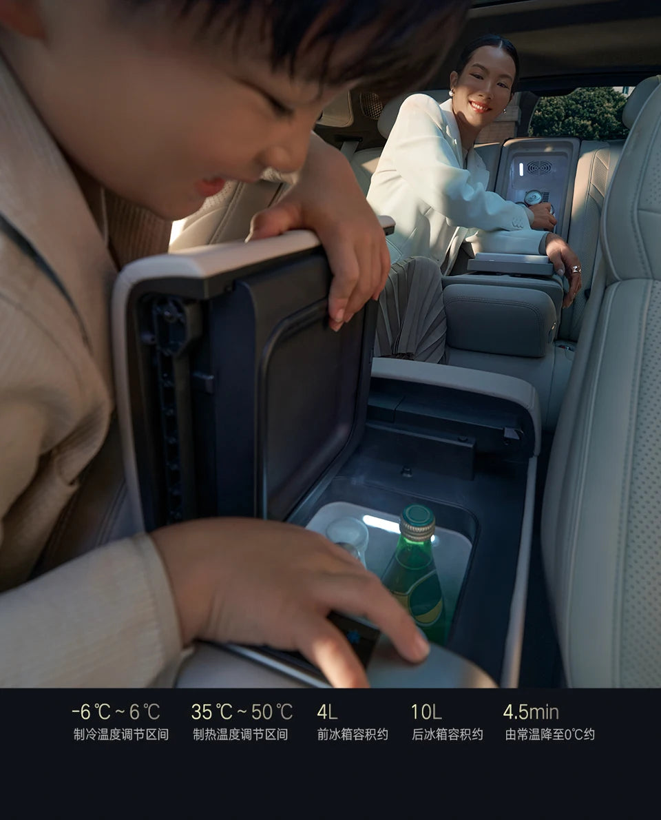 The world’s first mass-production sedan equipped with dual front-and-rear compressor-based hot & cold refrigerators, delivering refined comfort for every seat.